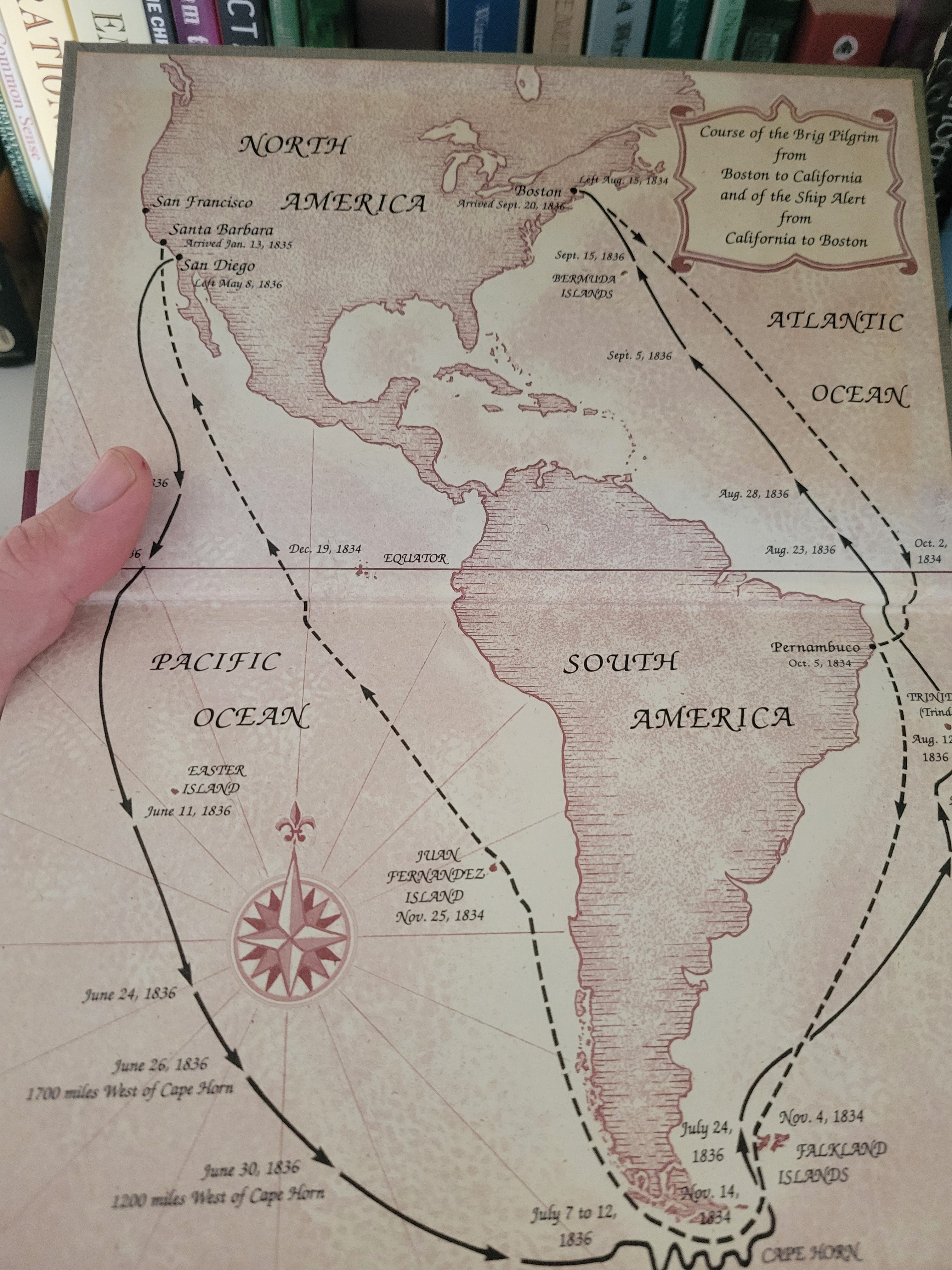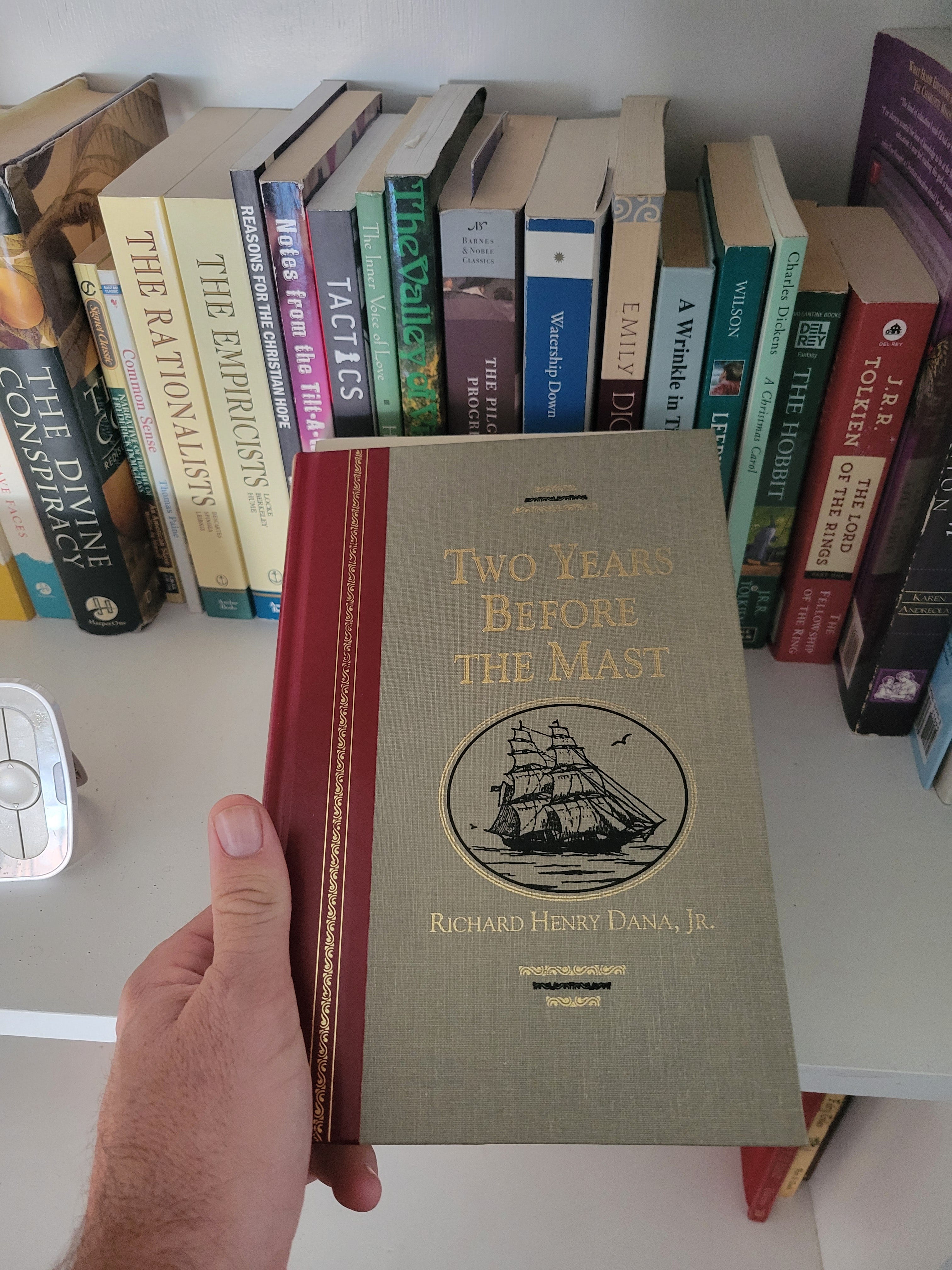 One title that I should have flipped open and finished long ago is Richard Henry Dana Jr.’s 1840 seafaring memoir ‘Two Years Before the Mast.’ A copy landed in my room when I was twelve or thirteen, along with a fact I now take much more seriously—I’m adopted, and through my birth mom’s family, Richard Henry Dana Jr. is a distant cousin, likely five times removed.