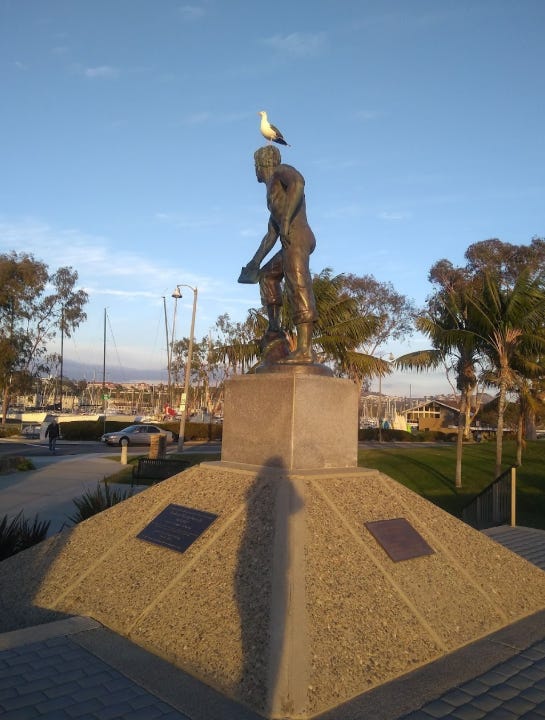 Knowing that my lineage through this story-behind-the-story runs all the way to a well-known author and lawyer, (RHD famously represented the U.S. Government before the Supreme Court in the Prize Cases that gave Lincoln the ability to blockade southern ports during the Civil War), I’m piqued to learn of more cameos down the line. One cameo—and the last personal story I’ll get into before the book itself—involves my uncle L paying homage to RHD at the statue of him in Dana Point, California, at another providential moment.